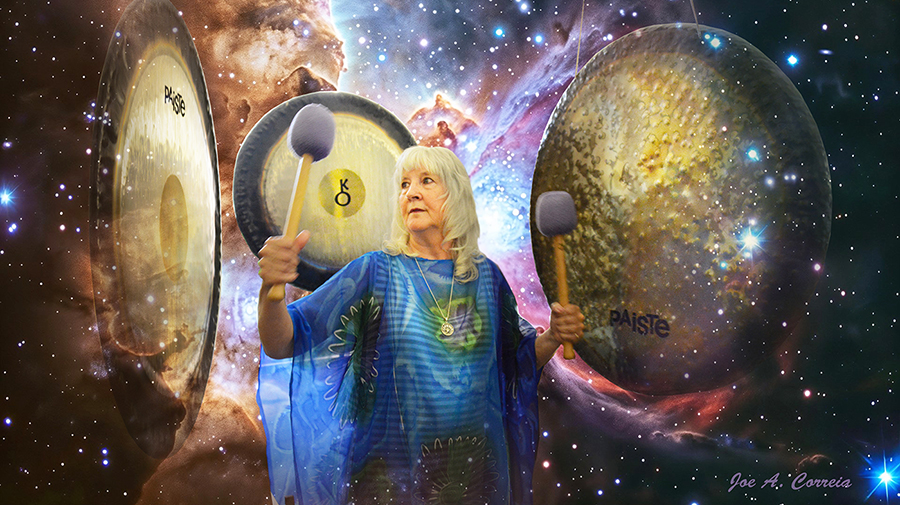 I received this image and message from Joe after he experienced a gong session with me in Hot Springs, Arkansas. I hope you enjoy the beautiful image he created, and subscribe to have your own gong experience. He took a photo of me playing the gongs, and replaced the background to represent his immediate experience from the vibration of the gongs.